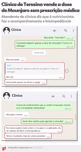 No caso das clínicas encontradas pelo g1, em Teresina (PI), e em São Luís (MA), a reportagem confirmou que o medicamento era vendido sem qualquer prescrição. Na primeira clínica, o g1 viu a caneta de Mounjaro. Na outra, recebeu uma foto por WhatsApp. Os números de lote foram enviados à fabricante, que não confirmou se o medicamento é original.